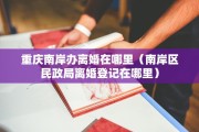 今天给各位分享重庆南岸办离婚在哪里的知识,其中也会对南岸区民政局离婚登记在哪里进行解释,如果能碰巧解决你现在面临的问题,别忘了关注本站,现在开始吧!本文目录一览: 1、重庆在哪里办离婚手续...